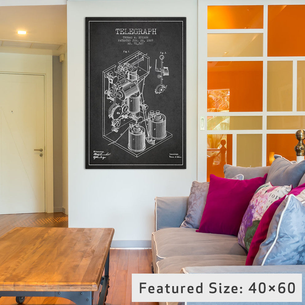 "Telegraph Charcoal Patent Blueprint" by Aged Pixel, 26x18x1.5