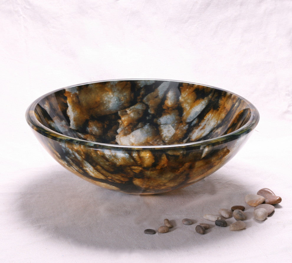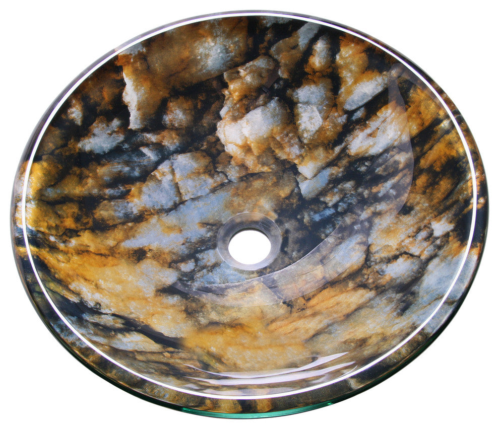 This Vessel Bathroom Sink with its lovely floral pattern is the perfect solution to your washing requirements. Made from tempered glass , this sink further complements your bathroom with its matching chrome pop-up drain in the center and mounting ring. It is available in a range of finishes for you to choose from. The sink is circular in shape and resistant to fire, scratch, shock, rust and UV light. The Vessel Bathroom Sink by Legion Furniture is eco-friendly, antimicrobial, non-toxic, and drip free. It can even be used outdoors. The sink is simple to maintain as you only need to wipe it with glass cleaner and a dry cloth. Finish: Brown