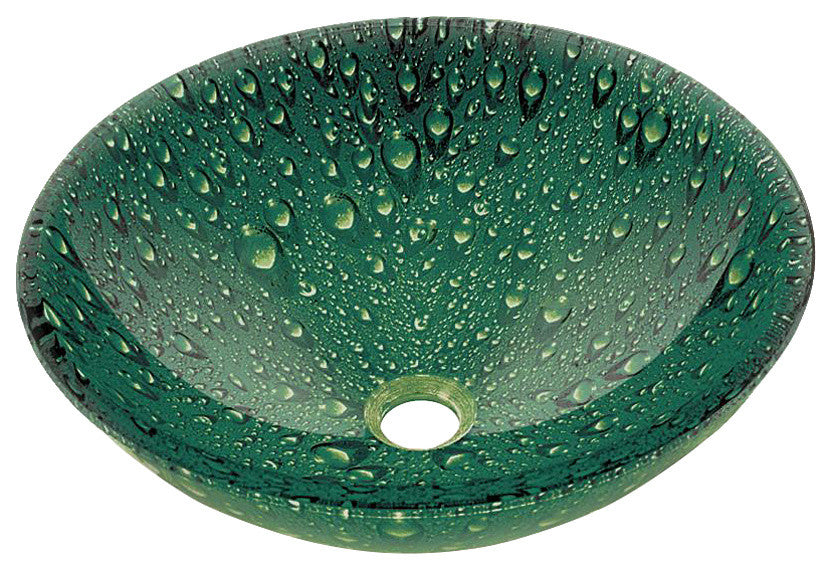 This Vessel Bathroom Sink with its lovely pattern is the perfect solution to your washing requirements. Made from tempered glass , this sink further complements your bathroom with its matching chrome pop-up drain in the center and mounting ring. It is available in a range of finishes for you to choose from. The sink is circular in shape and resistant to fire, scratch, shock, rust and UV light. The Vessel Bathroom Sink is eco-friendly, antimicrobial, non-toxic, and drip free. It can even be used outdoors. The sink is simple to maintain as you only need to wipe it with glass cleaner and a dry cloth. Finish: Green