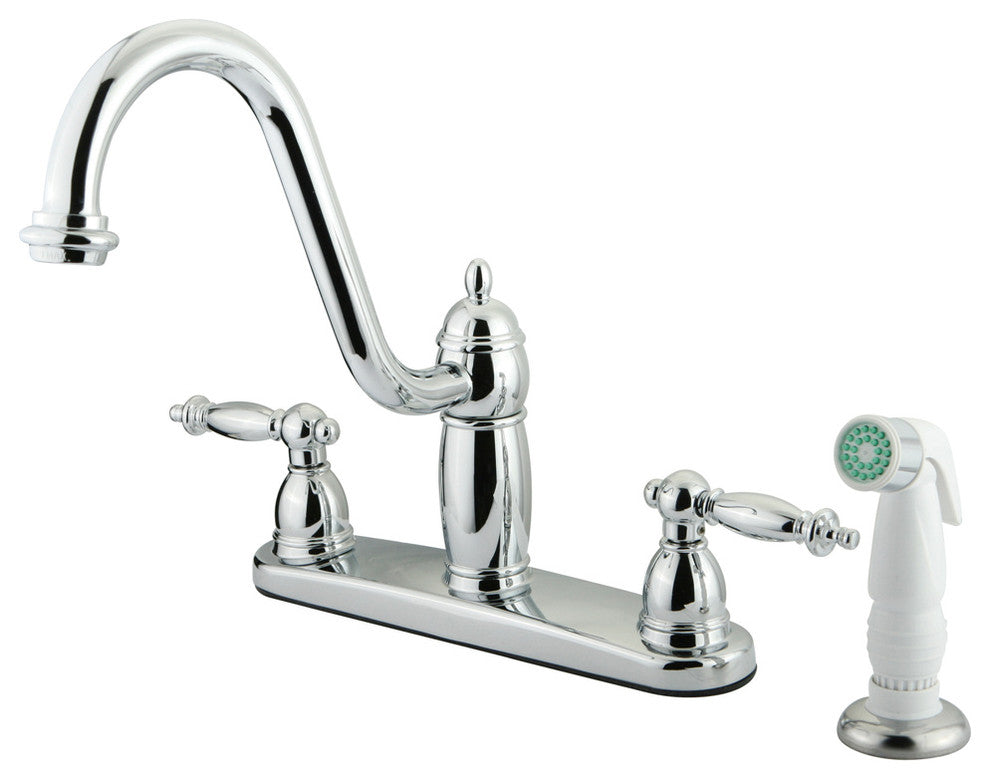 Templeton Double Handle 8" Kitchen Faucet with White Sprayer