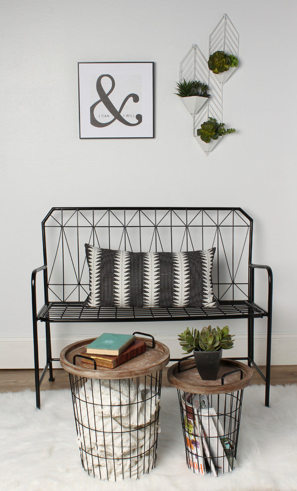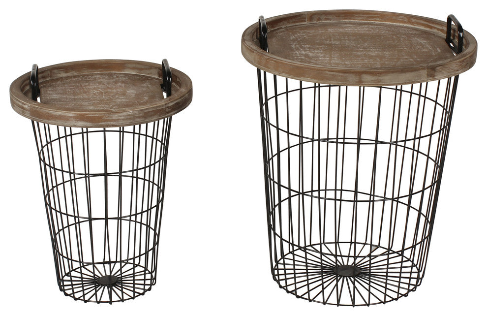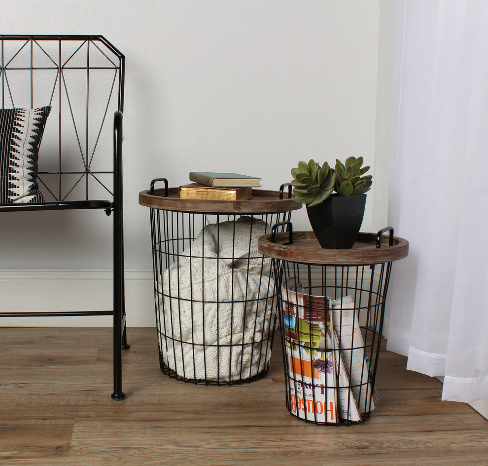 • Farmhouse Style: This beautiful nesting table set features a set of two wire baskets with removable tray tops for a multifunctional storage and display utility