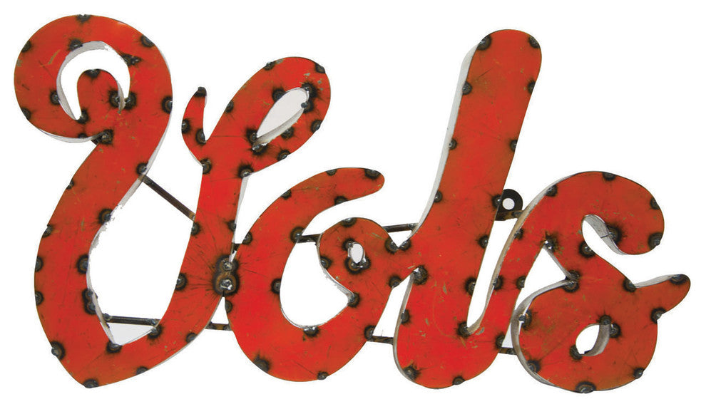 Reduce your carbon footprint while displaying your team pride with this Tennessee VOLS recycled metal wall decor with distressed finish.Product Details: 23" x 13" x 2" 100% Metal Parts made in China and Mexico