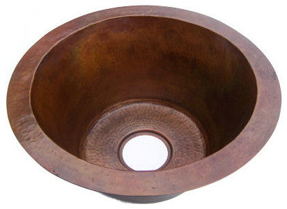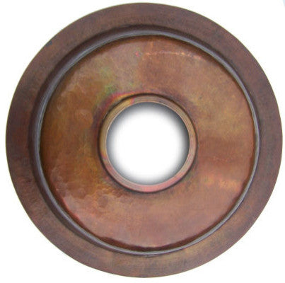 This round bar/kitchen copper sink has a standard 3.75 diameter hole at the bottom center, it fits the 3.5" diameter drainage size. The copper sheet is 16 gauge (0.05" thickness). The finish is in terra, which is composed mostly of light brown shades. If scratched, it will heal by itself, if it does not, we have a way to re-apply the patina it back!From a copper sheet the wise artisan hands transform it into this unique piece. It is designed to be either dropped-in or under-mounted because the rim is flat.IMPORTANT NOTE: The patina can be damaged faster if abrasive substances are used to clean it, because of this, we recommend rinse it with water and soap only!"Hand-hammered and mold-cut to perfectionHandcrafted by Mexico''s Finest ArtisansWe include 1" long brown screws in all of our hammered copper switch plates