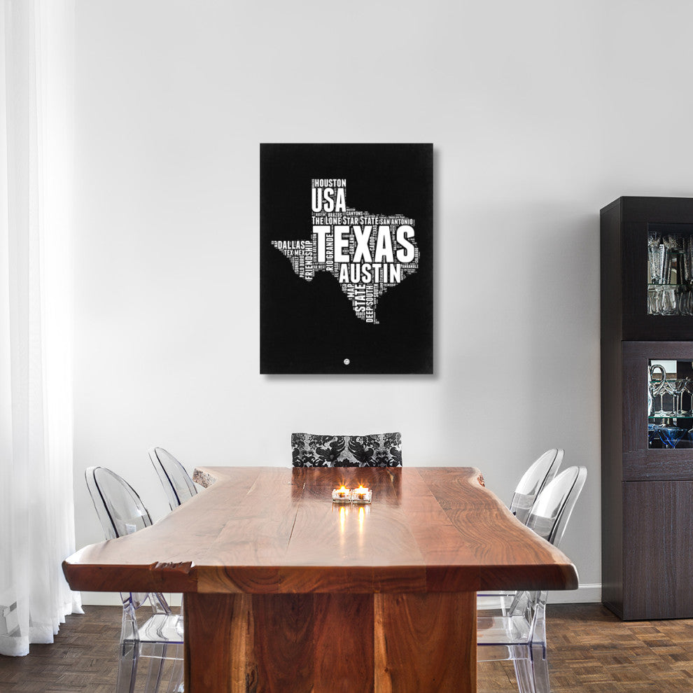 "Texas Black and White Map" Fine Art Print