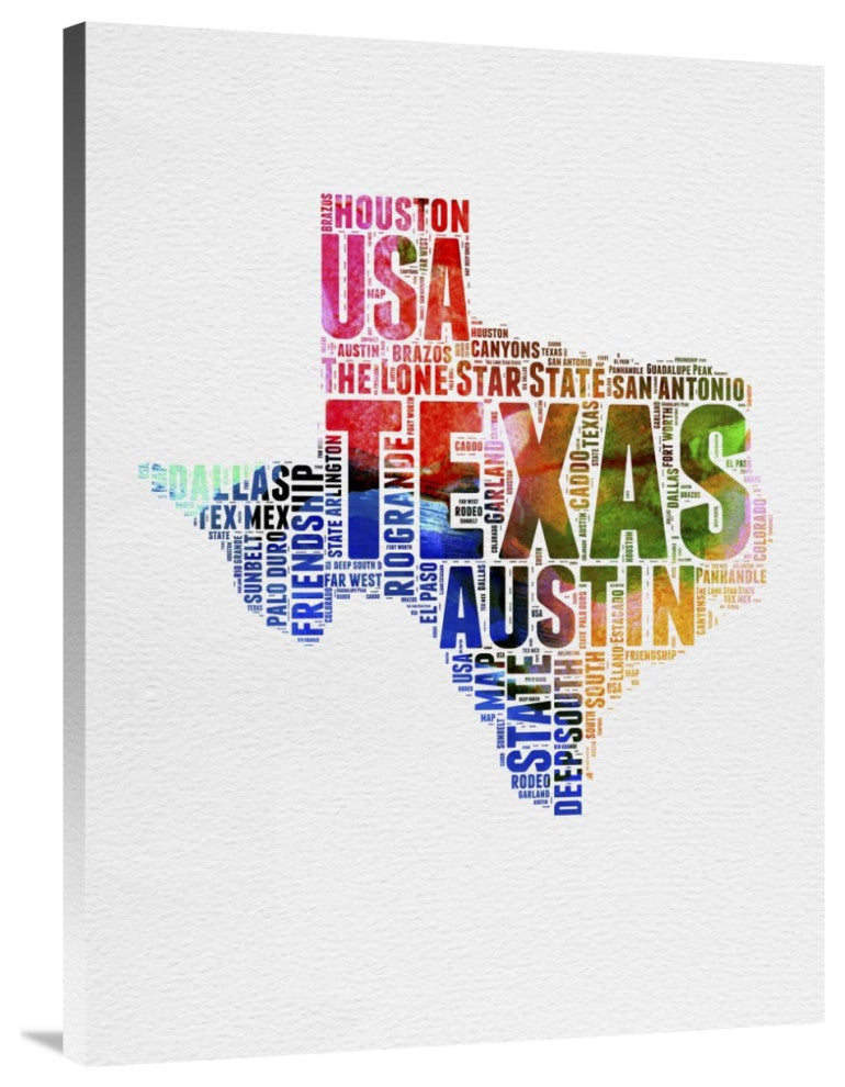 "Texas Watercolor Word Cloud" Fine Art Print