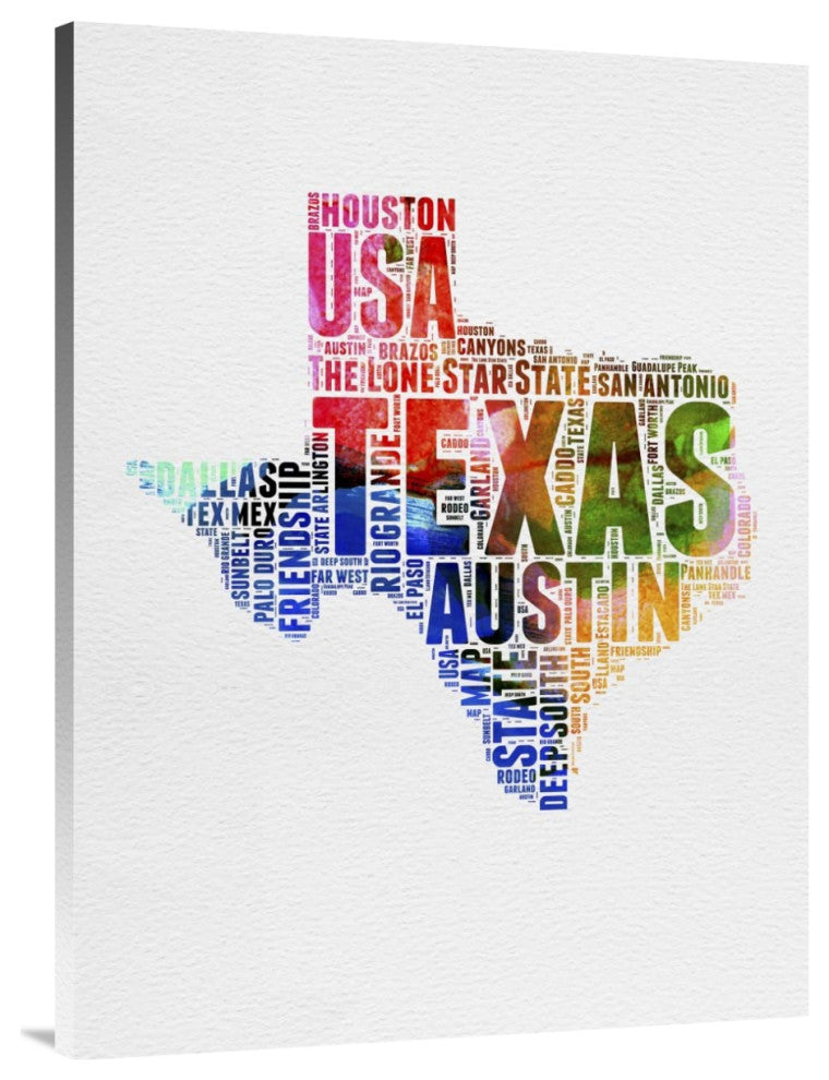 "Texas Watercolor Word Cloud" Fine Art Print