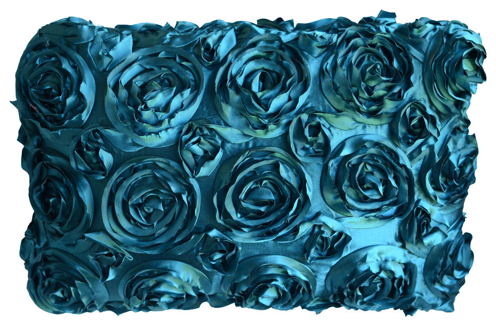 Textured Rose Pillow, Turquoise, 20"x20", Without Insert