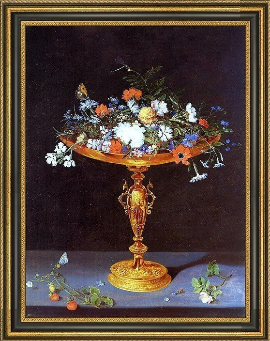 18" x 24" The Elder Jan Bruegel Tazza with Flowers framed premium canvas print reproduced to meet museum quality standards. Our Museum quality canvas prints are produced using high-precision print technology for a more accurate reproduction printed on high quality canvas with fade-resistant, archival inks. Our progressive business model allows us to offer works of art to you at the best wholesale pricing, significantly less than art gallery prices, affordable to all. This artwork is hand stretched onto wooden stretcher bars, then mounted into our 3 3/4" wide gold finish frame with black panel by one of our expert framers. Our framed canvas print comes with hardware, ready to hang on your wall. We present a comprehensive collection of exceptional canvas art reproductions by The Elder Jan Bruegel.