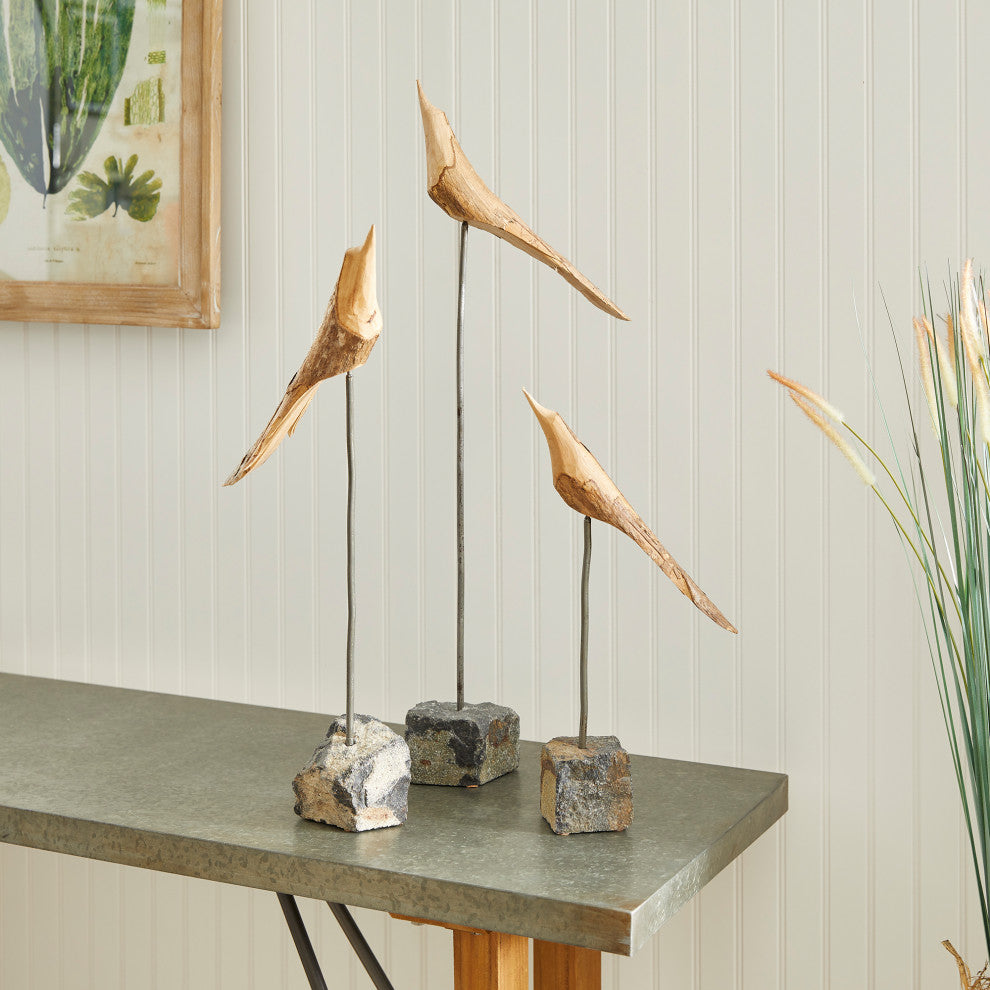 Handcrafted rustic artwork in rich natural tones. Decorative interior use only. Clean with soft cloth. Avoid harsh chemicals. Includes 3 pieces.