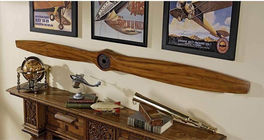 Take a spin with this authentic replica of a time gone by. Like those on planes that downed the legendary Red Baron in World War I, our almost 6-foot-tall propeller is intended for proud display leaning in a corner or hanging vertically or horizontally over a mantle with included hardware. Crafted of quality designer resin with the most authentic wood grain finish our artists have ever rendered, this legend boasts a faux brass insert on its decorative center hub. Whether thrilling an aviator, a historian or someone just reminiscing about the days when flying machine propellers needed a good, solid swing, this Design Toscano original is an unparalleled aviation decor piece and conversation starter! 6"Wx2"Dx71"H. 7 lbs.