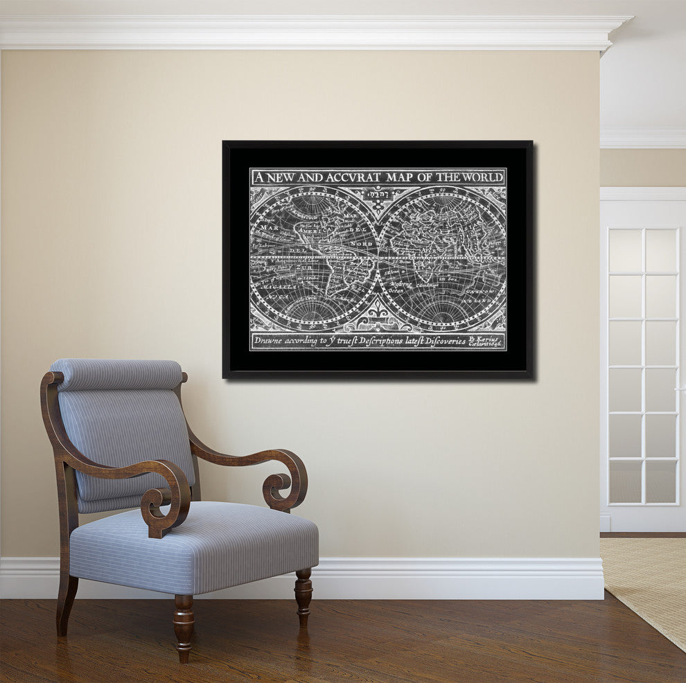 The World Vintage Monochrome Map Canvas, 16"x21"