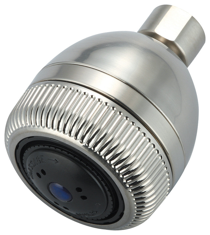 Three Functions Pulsating Showerhead 3 Spray Patterns Brass Ball Swivel Joint 2-1/2" Face 1.75 GPM @ 80 PSI