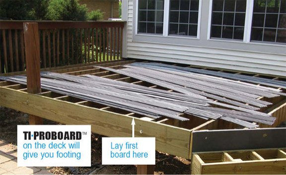 TI-PROBOARD UNDERLAYMENT FOR TILING OUTDOOR DECKS• •  4 Pieces • • Size of Each Piece: 12" X 95" X 0.375"TI-ProBoard is the base of a unique system to form a solid tiled surface to new or existing floors.TI- ProBoard, underlayment boards for outdoor tiling installs directly to deck joists to provide a stable 3/8 in. substrate for installation of tile rather than traditional decking boards. Easy for home owner or professional installer, TI-Proboard prepares the deck surface for setting materials and tile installation. Tile the entire deck surface, a walkway, or insert a pad for grills and fire pits to help prevent stain or harm to the deck"™s surface. Enjoy stylish outdoor solid surfaces that are durable and easy to maintain.INTERIOR USE - TI-ProBoard can applied straight to the floor joist then tile (total thickness is less than 1 inch when using a standard tile. Making the transition from room with carpet to tile almost seamless (carpet will be on a plywood) compared to the standard tile installation of (plywood, subfloor, tile) which would be higher that a carpeted room and would require a "œstep up"� to the tile areaTI-ProBoard is an anti-fracture material to protect the tile and is placed over plywood, (plywood will have failures)TI-ProBoard is a structural material so there is no other plywood, backer boards etc.No special tools are required. When your deck is finished there is a dry area underneath for storage.The smallest tile that can be used - 6" x 6"The weight per sq ft. of all components - Dead weight around 8 lbs. sq ft".In accordance with the Performance - Level Requirement Guide of the 2003-2004 Handbook for Ceramic Tile Installation, the installation is rated as "œEXTRA HEAVY"� suitable for use in dairies, breweries, etc.Fully loaded TI-ProBoard (i.e. mortar, thin-set, Porcelain tile, and grout.) is 8lbs of dead weight per square footTI-ProBoard warranty - 10 years