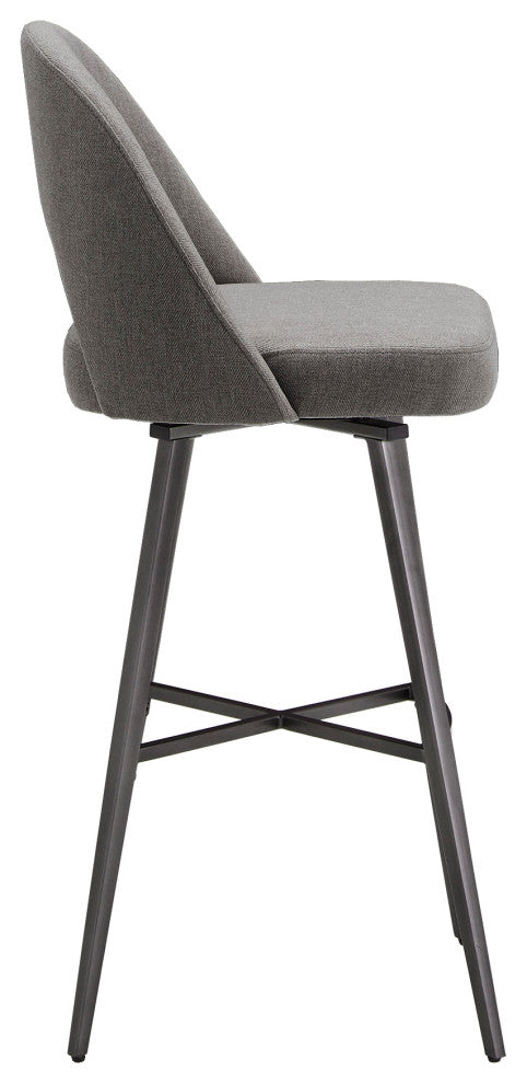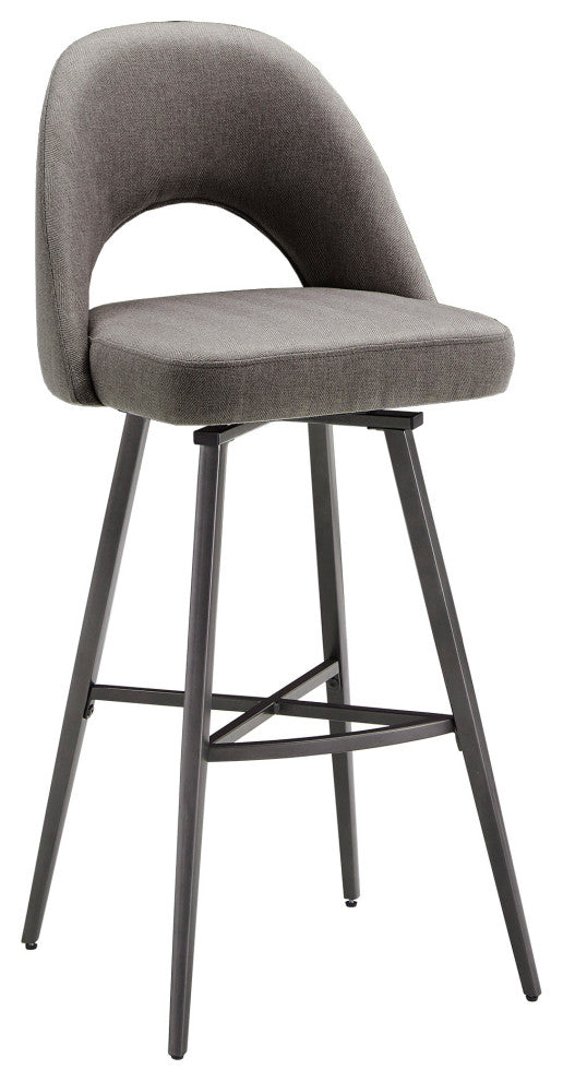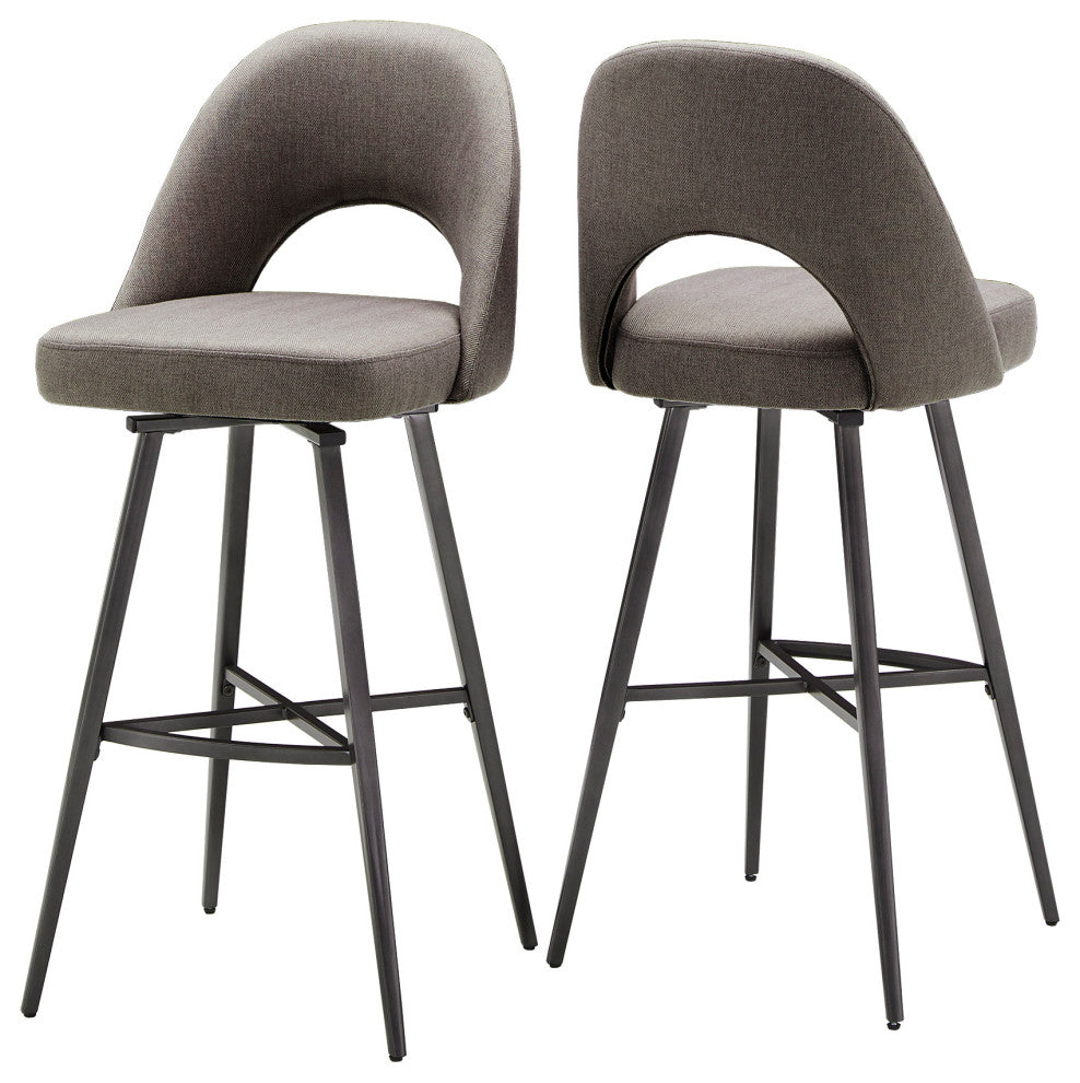 Tierno Metal Fabric Swivel Bar Stools, Set of 2, Dark Gray, Bar Height