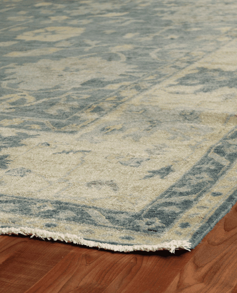 Tirana Antique-Style Woven Oushak Rug, Blue and Ivory, 4'x6'
