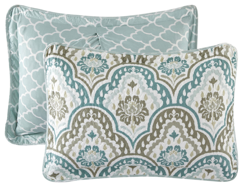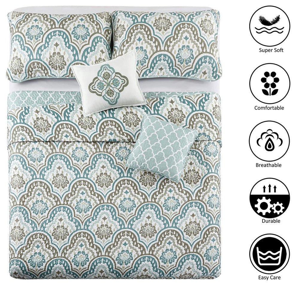 Tivoli Ikat Quilted 5 Piece Bed Spread Set, Teal Aqua, King