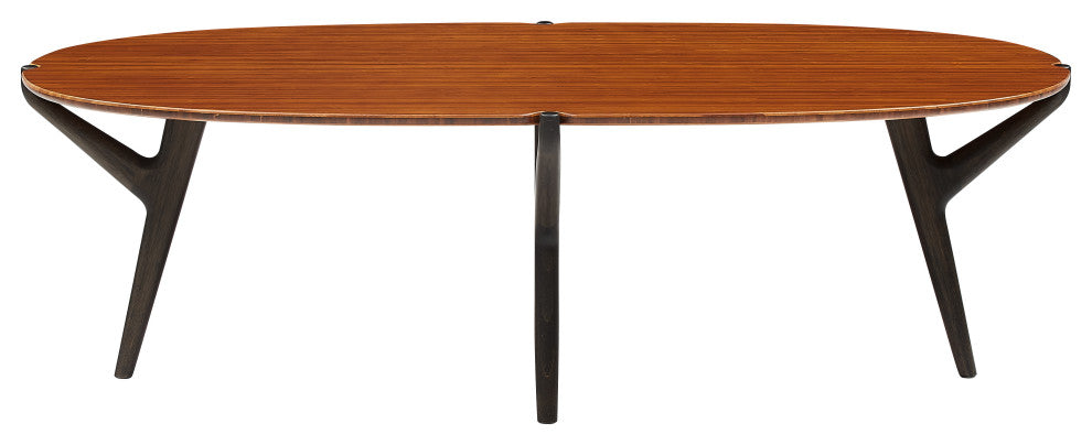 Crafted sustainably from solid bamboo, the Amber color of the tabletop is not a stain, but an eco-friendly transformation achieved through heat, steam, and pressure, infusing the bamboo with a rich, deep hue. The continuous color and beautiful grain pattern throughout the material highlight the inherent beauty of bamboo, with subtle variations in shade making each piece one-of-a-kind. These natural differences are a hallmark of quality craftsmanship and a testament to the use of solid bamboo.