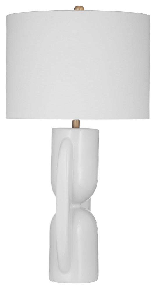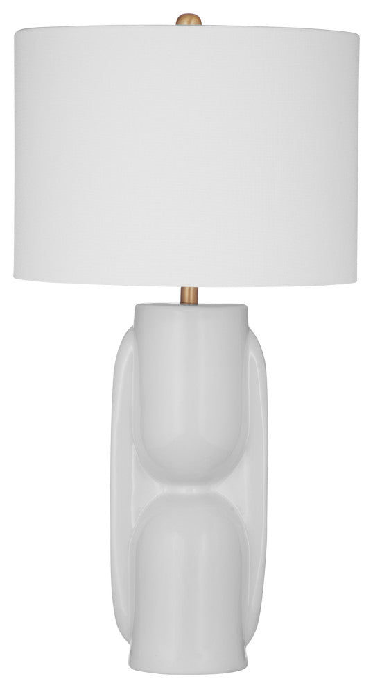 The Tolland Table Lamp boasts a modern geometric shape that adds a contemporary flair to any space. With its glossy white finish, it exudes a sense of freshness and sophistication, effortlessly blending into various decor styles. This stylish lamp not only illuminates your room but also serves as a chic accent piece. Its clean lines and sleek design make it a versatile addition to any home or office environment. Illuminate your surroundings with the Tolland table lamp and elevate your interior with its understated elegance.