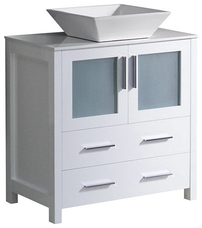 Torino 30" Bathroom Cabinet, Base: White, With Top, Vessel Sink