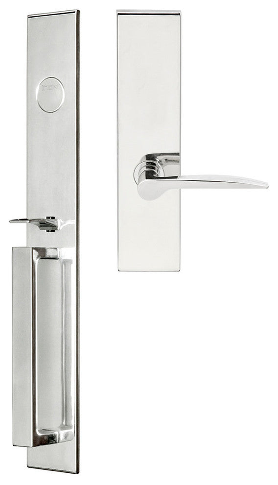 Dummy Handleset with BW Broadway Plate, 351 Toronto Lever, Full Dummy Mortise, Dummy Cylinder Outside, Dummy Plate Inside, Polished Stainless Steel (US32/629), Left Hand