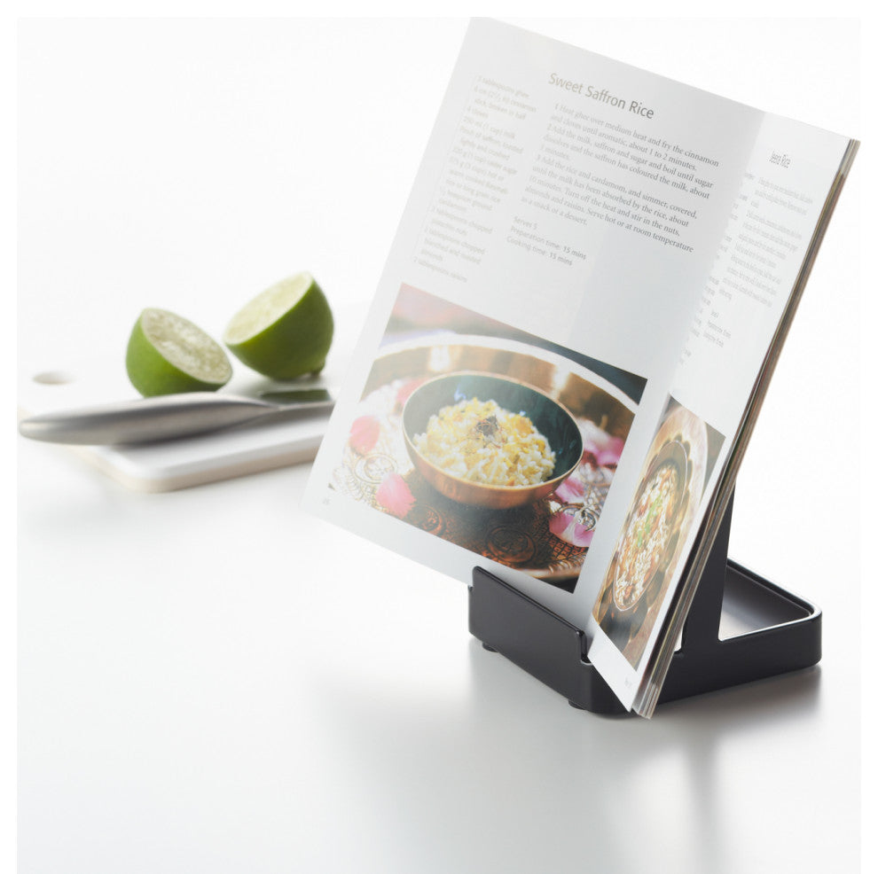 Keep countertop cooking mess to a minimum with this award-winning ladle and lid rest. Doubles as a stand for cookbooks and tablets. Bottom tray pops out for an easy clean. [Details]