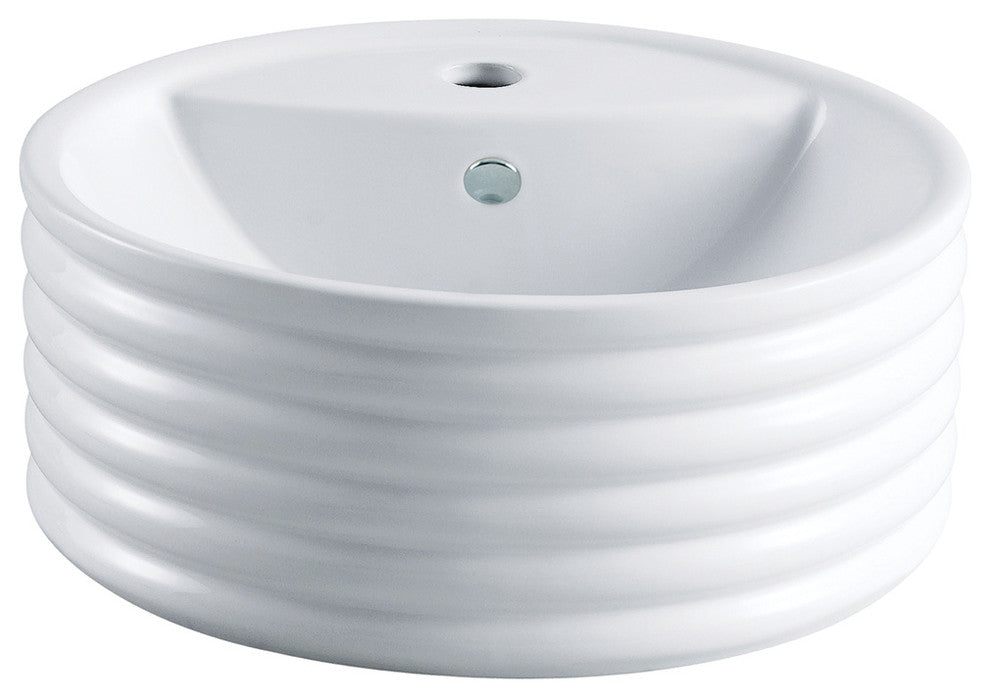This unique white china vessel sink features a deep inner basin that descends 5-1/2". The outer portion is designed with an interesting circular multi-tier exterior. This bowl-like basin consists of soft curves and smooth contours and is made from the finest vitreous china material, made to prevent from scratching or chipping. Manufacturer: Kingston BrassModel: EV5212UPC: 663370097553Product Name: White China Vessel Bathroom Sink with Overflow Hole & Faucet HoleCollection / Series: TowerFinish: WhiteTheme: ClassicMaterial: CeramicType: SinkFeatures: Finest vitreous china vessel with high chemical and thermal shock resistanceStain resistant and easy-to-cleanAll side enamel finishClosed plumbing from rear endDrain not included