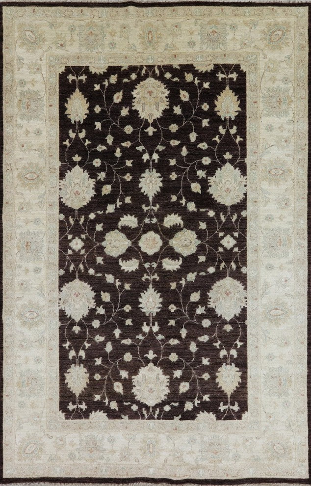 Hand weaved (hand knotted) in northern Pakistan, Peshawar/Chobi rugs are rich with culture. The design elements of Peshawar/Chobi rugs, consist of contemporary and traditional design elements and vintage motifs throughout. Making them one of the most versatile collections of rugs on the market. The use of 100% all natural vegetable dye on the wool is one of the most distinguishing features of Peshawar/Chobi rugs, they possess beautiful natural coloration.