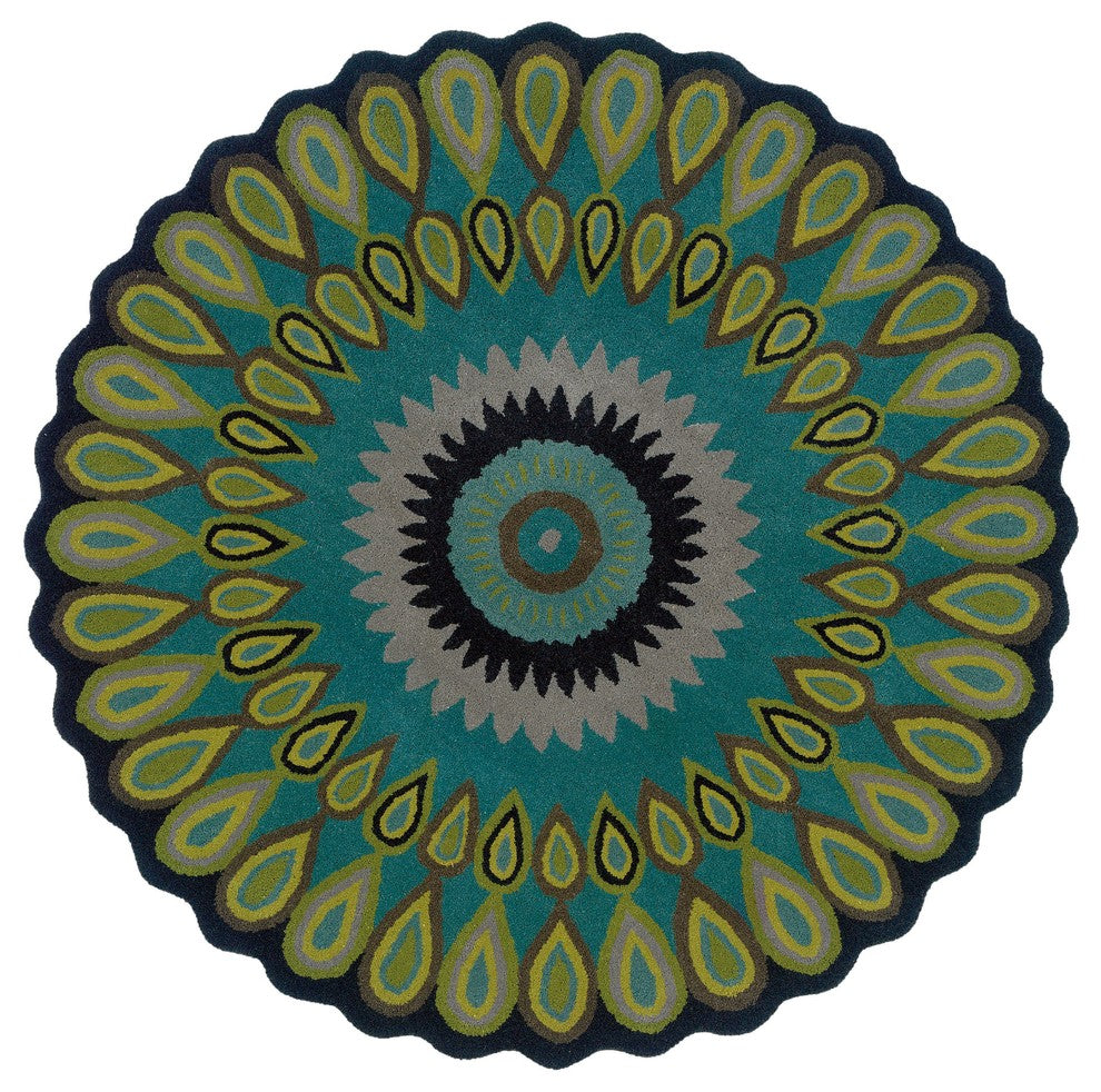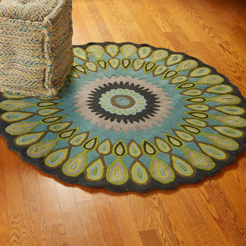 Hand tufted in India, this piece is handmade for your home. This rug features many unique details such as the peacock themed design, the scalloped edges, and rich coloring. The scalloped edges provide a great transition from rug to hardwood or even carpet. The medallion center with its deep colors catches the eye and brings attention to this masterpiece''s detailing. Bring this piece home today for great style and rich coloring!