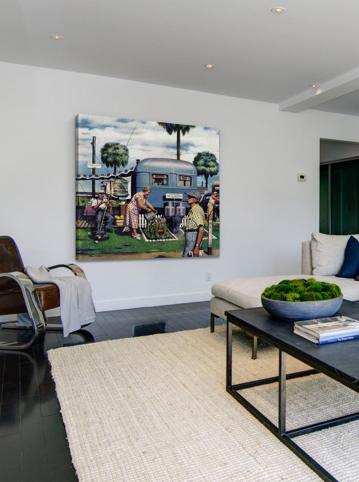 "Trailer Park Garden" Painting Print on Canvas by Stevan Dohanos