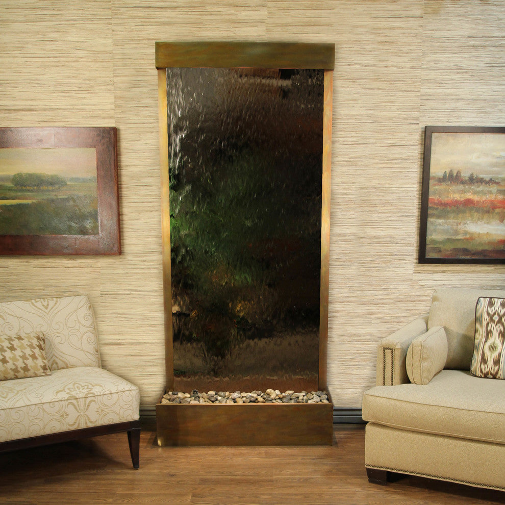 Tranquil River Flush Mount Water Fountain, Silver Mirror, Rustic Copper
