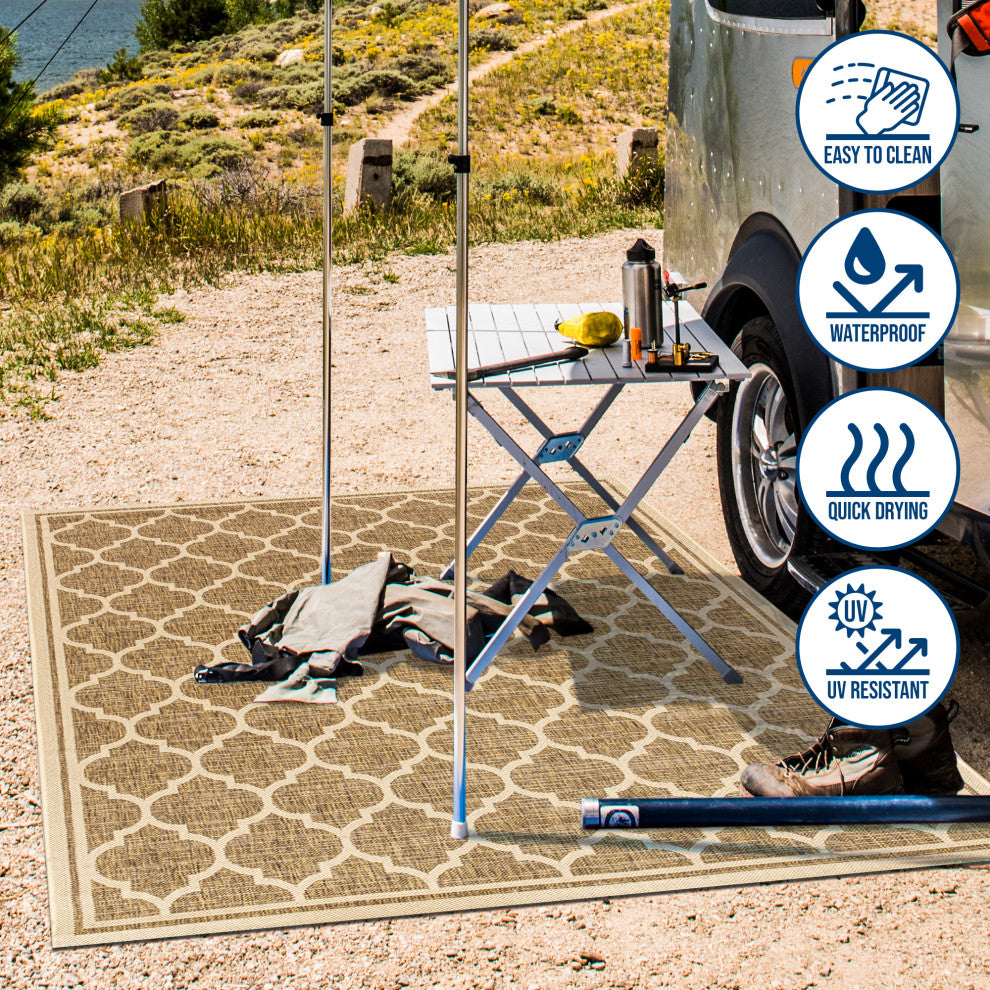 Our popular geometric design is inspired by Moroccan tile patterns. This classic rug adds eclectic style to an outdoor porch or patio. Mingled tones of deep brown with a beige ogee trellis pattern give this rug a hand-woven texture. The flatweave design is great for high-traffic spaces indoors too.Features:• Flat-weave construction of 100% polypropylene• Deep brown and beige with a handwoven mingled texture• Water resistance with 0.19" pile• 100% Polypropylene• No backing, use of rug pad is recommended (sold separately)• Power Loomed in Turkiye• Actual Dimension: 10 ft. x 14 ft.• Color: Brown/Beige• Thickness measures: 0.19 in.• Available in multiple sizes and/or colorsRug Care:• Vacuum regularly and spot clean as needed; avoid direct and continuous exposure to sunlight; use brushless vacuum; remove spills immediately; if liquid, blot with clean, undyed cloth by pressing firmly around the spill to absorb as much as possible; for hard to remove stains, professional rug cleaning is recommended; store in a dry, well ventilated area and rotate for consistent wear• Packing and shipping may cause temporary creases in rugs, which will flatten out after a week on the floor; to expedite the process, try back-rolling your rug before laying it down, and then allow ample time for the remaining creases to relax• Please Note: Due to differences in monitors, some rug colors may vary slightly. Lengths and widths may vary from the published dimensions. Patterns may vary slightly according to shape and size selected.About us:Style your floors with JONATHAN Y. By combining fine craftsmanship and design, this New York creative studio is bringing fashion to your floors. The collection mixes sustainable organic materials, vibrant colors and trend worthy styles to create JONATHAN Y''s distinctive catalog of rugs.