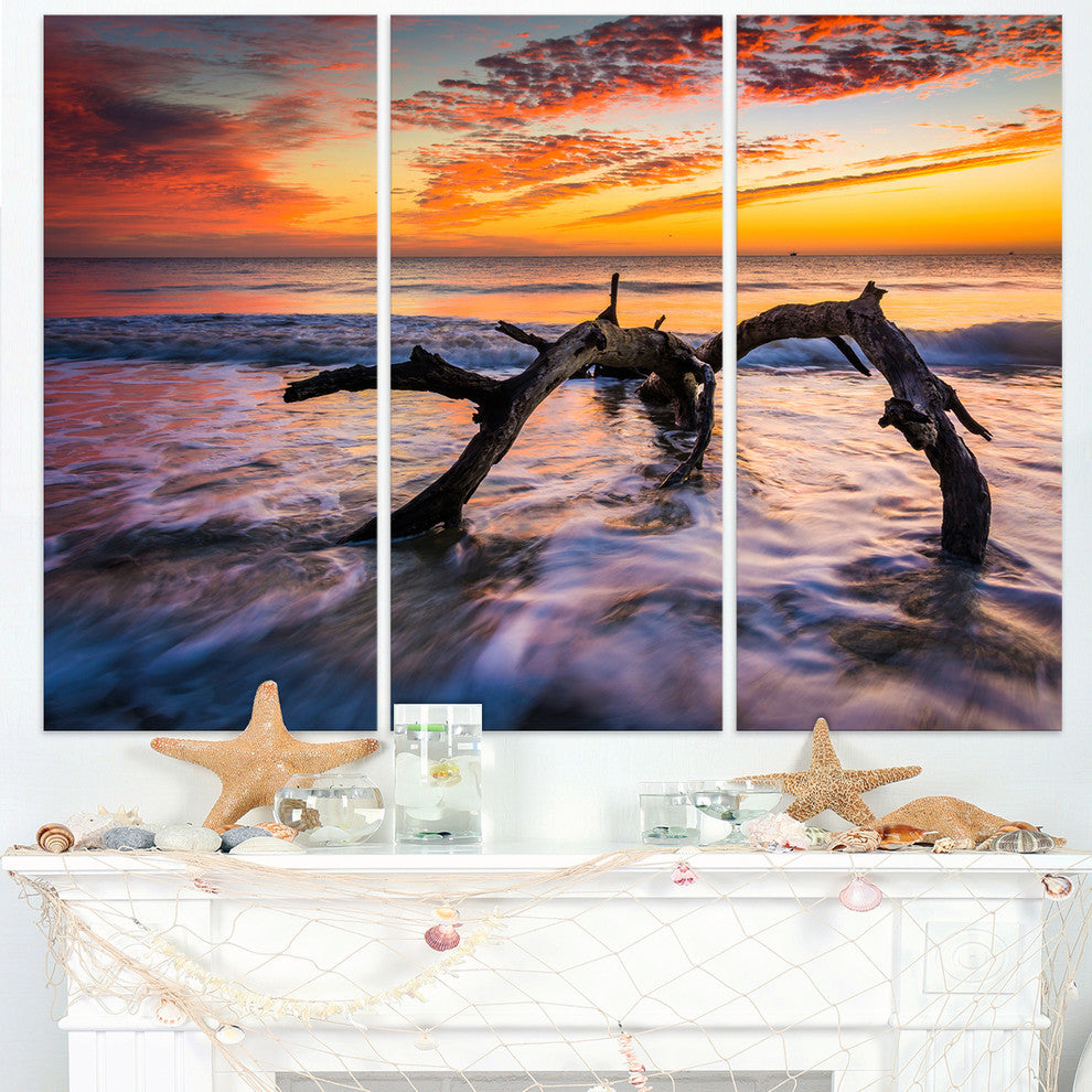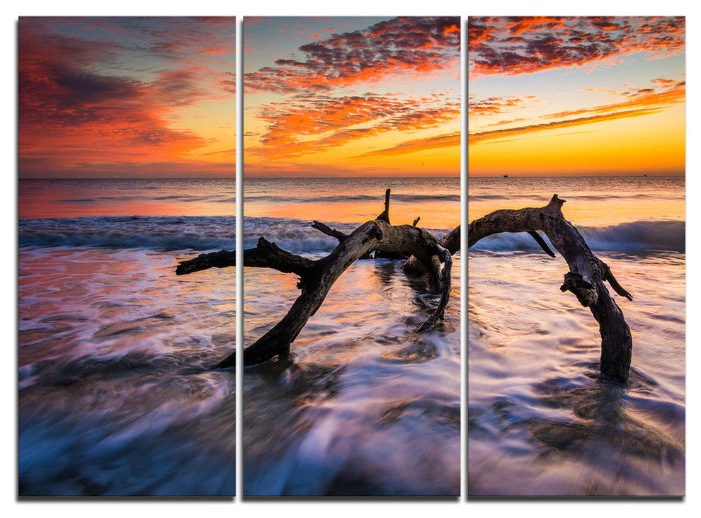 "Tree and Waves in the Atlantic Ocean" Metal Wall Art, 3 Panels, 36"x28"
