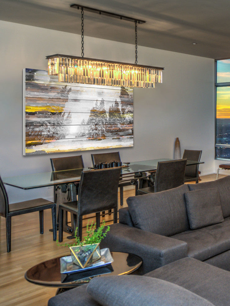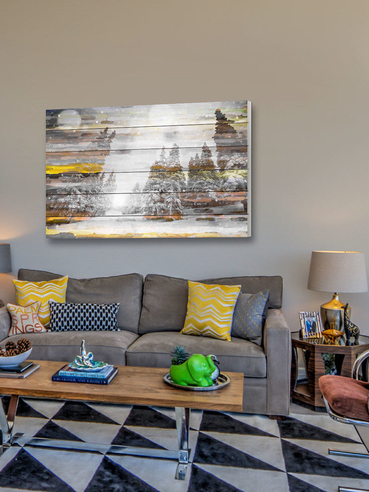 Liven up your walls with artwork that speaks to your style. This beautiful "Tree Snow" Painting Print on White Wood features vivid tones and supple artistry. Printed on white wood, this 36 inch wide by 24 inch tall piece will be an exceptional addition to any room. Fine art UV ink print on white wood from Marmont Hill CollectiveWood pieces are hand-selected by fine craftsmen or printingArrives ready to hangIncludes a certificate of authenticityArtist signature on the front