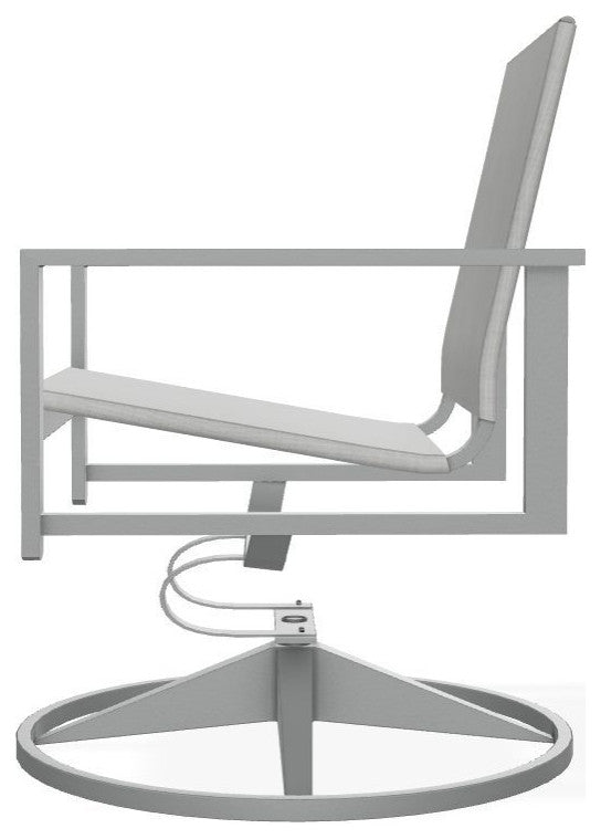 Bring a modern sensibility to your outdoor space with the Tribeca Sling collection. Designed with sleek lines and a contemporary urban feel, each piece balances style, comfort, and durability. The timeless swivel rocker offers smooth mobility, so you never miss a moment with family or guests. Crafted with a weatherproof, powder-coated aluminum base, it''s built to last season after season.Features:•  Overall product dimensions are 24" W x 25" D x 34.75" H•  Extremely durable 100% powder-coated aluminum frame will not rust, peel, or crack•  High-quality 100% stainless steel hardware•  Quick-drying, replaceable sling fabric lets you update your look while keeping the frame•  Smooth swivel rocking motion with 360 degree rotation•  Proudly made in the USA with over a century of craftsmanship since 1903Dimensions:Outdoor Standard Chair•  Assembled Product: 24 inches wide x 25 inches deep x 34.75 inches high•  Seat Depth: 26.5 inches•  Seat Height: 26 inches•  Back Height: 43.5 inches•  Weight Capacity: 350 pounds