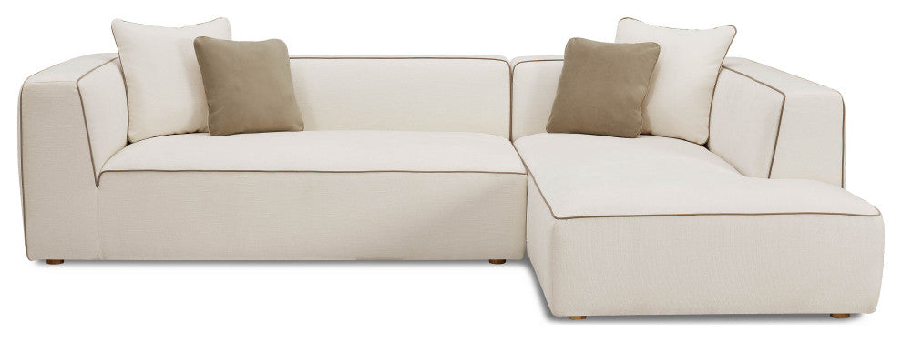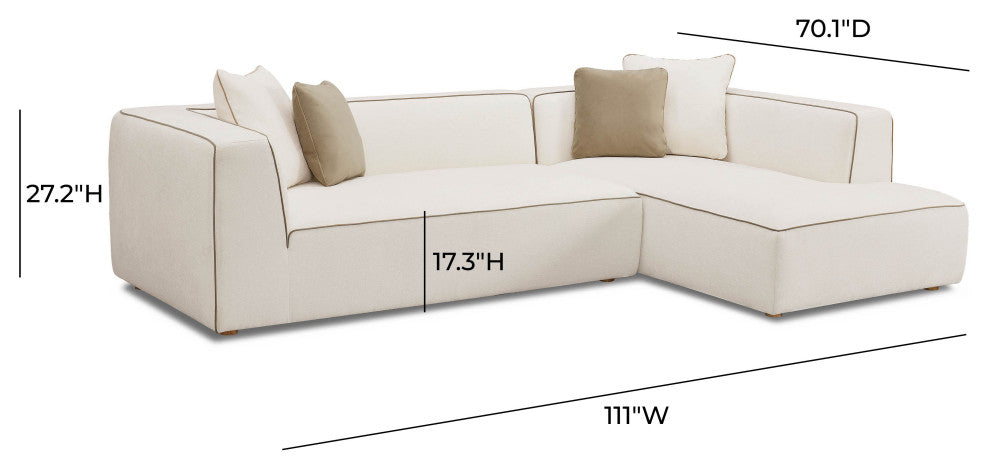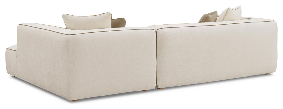 The Tristine Sectional brings effortless European style with an ultra-cozy twist, featuring deep cushions, rounded edges, and plush synthetic down accent pillows. Contrasted piping and a mix of textures make it a statement piece from every angle, whether floating in a room or tucked into a corner.