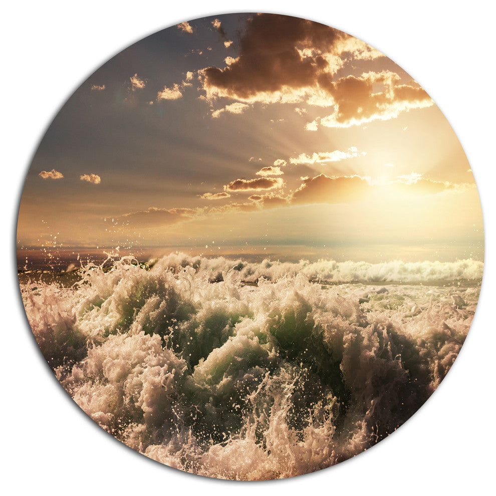 Troubled White Waves On Beach, Seashore Round Wall Art, 36"