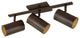 A sleek track light with a modern edge, Rueben is designed for a modern bathroom. Befitting mid-century style homes, the industrial-inspired silhouette incorporates right angles and conical shades. Articulating heads allow for precise directional positioning as needed. Rueben comes with 2 or 3 lights and a choice between Patina Brass and Bronze finishes.