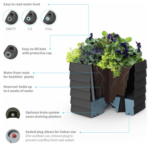 UNIQUE DRAINAGE: The Slat includes a pre-drilled drainage hole for healthier plant growth. When using the plant pot outdoors, remove the red waterproof plug. A hidden overfill tube drains out excess rainwater, ensuring the plants� longevity.