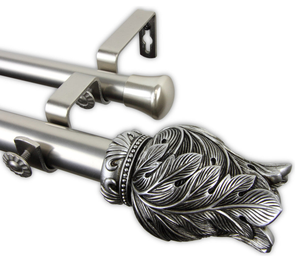 Tulip 1" Double Curtain Rod, Black, Satin Nickel, 120"-170"