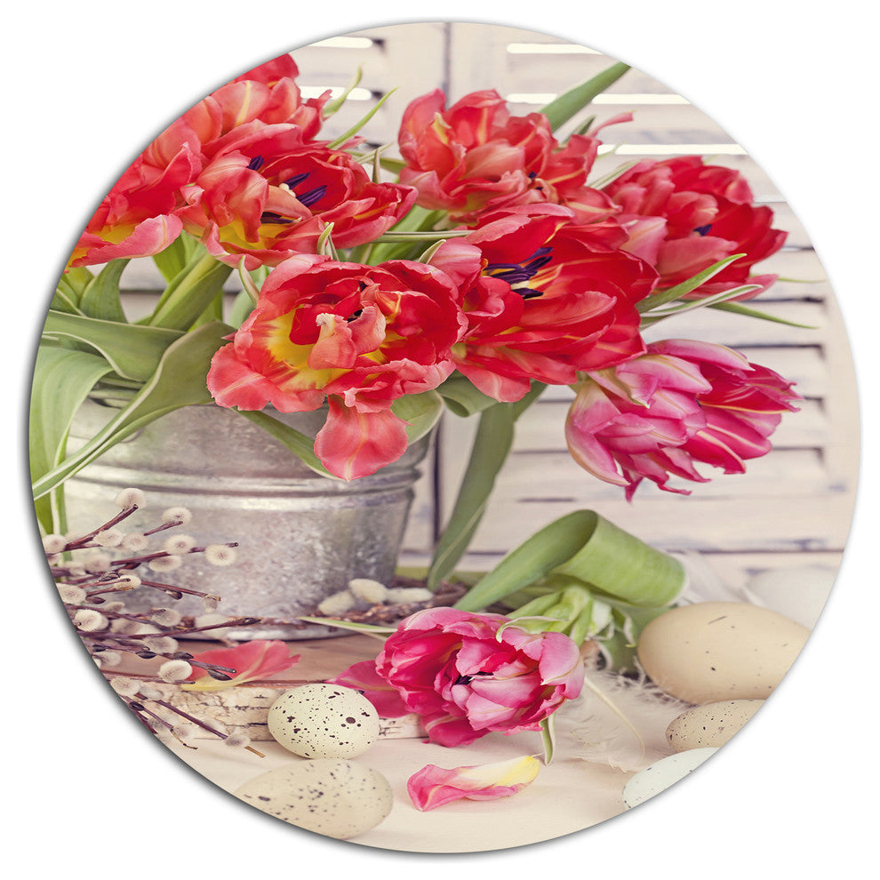 Tulip Flowers And Easter Eggs, Floral Round Wall Art, 23"