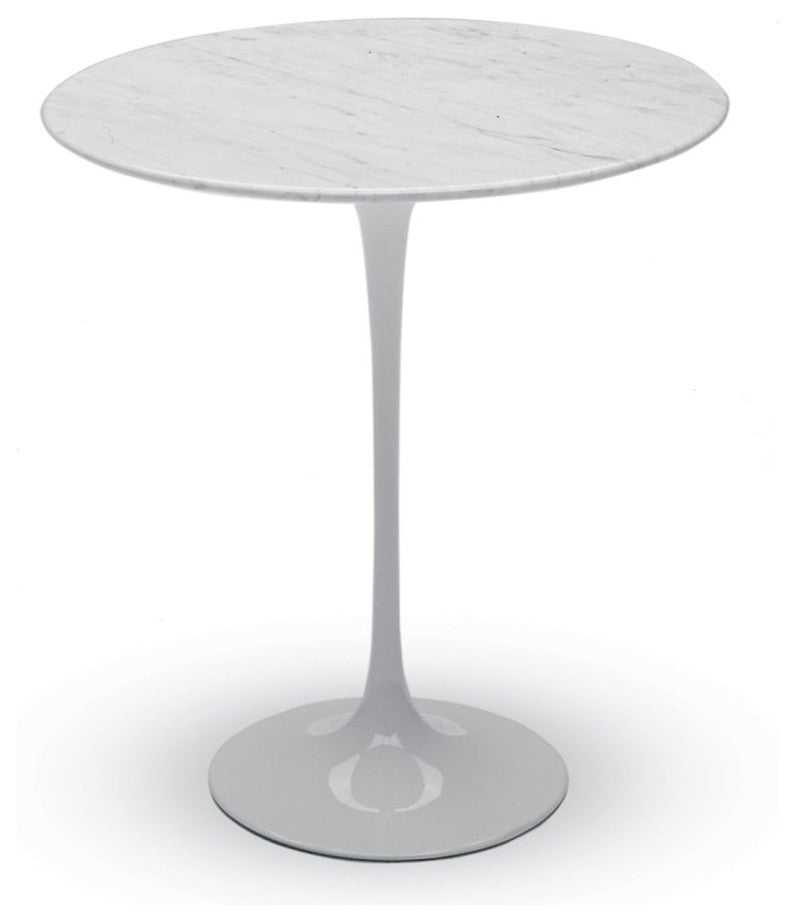 The Saarinen Side Table is a popular addition to any room of the house. With its sweeping lines, this side table is the epitome of one of the 20th century''s legendary designers, Eero Saarinen. With a cast aluminum base finished with a contract grade glossy white epoxy coating, the table is topped with a durable white Carrara marble top. The top is coated with a sealant and wax making it resistant to spills. For added stability, the base is counter weighted with a cast iron disk. The overall fit and finish is impeccable as it is made in Italy by craftsmen devoted to the tradition of making modern classic furniture.