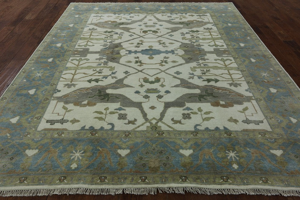 Turkish Oushak Hand-Knotted Ivory Oriental Wool Rug, 8'x10'