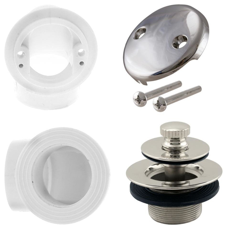 This Schedule 40 PVC plumber''s pack included the two hole top elbow, coarse thread bottom elbow, metal overflow cover and tip-toe strainer and closure. Just what a plumber needs - no tee or PVC pipe is included. 1-1/2 in. Tip-Toe Style Drain. Two Hole overflow faceplate. PVC Top Elbow and Shoe Elbow Included. Heavy Duty Metal Construction. Tubing and Tee Not Included.