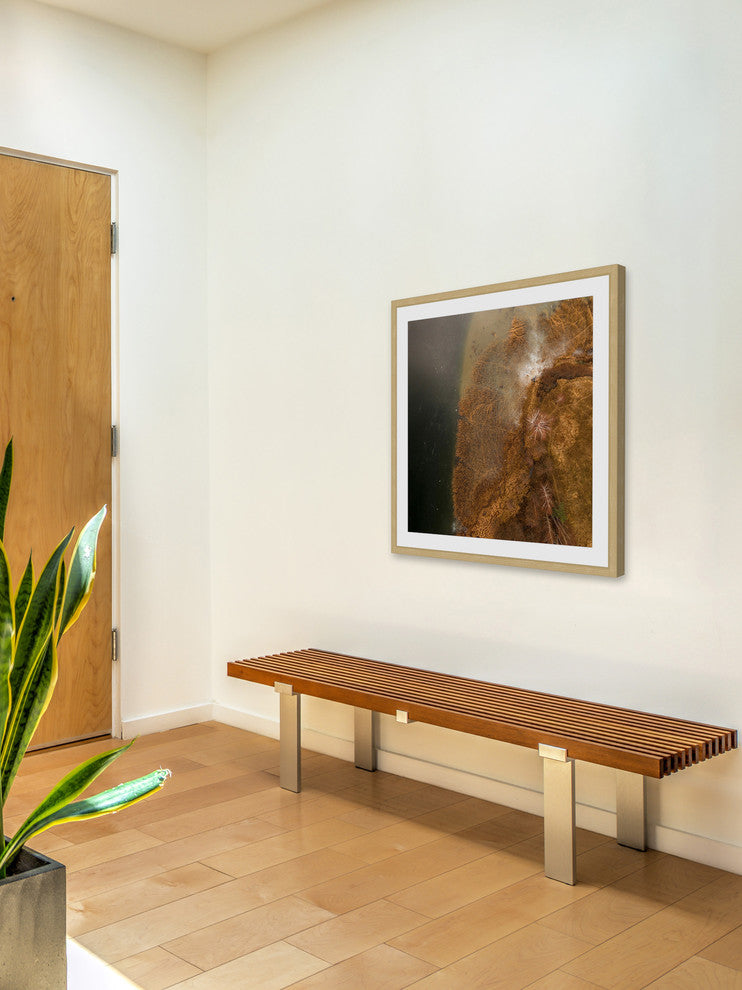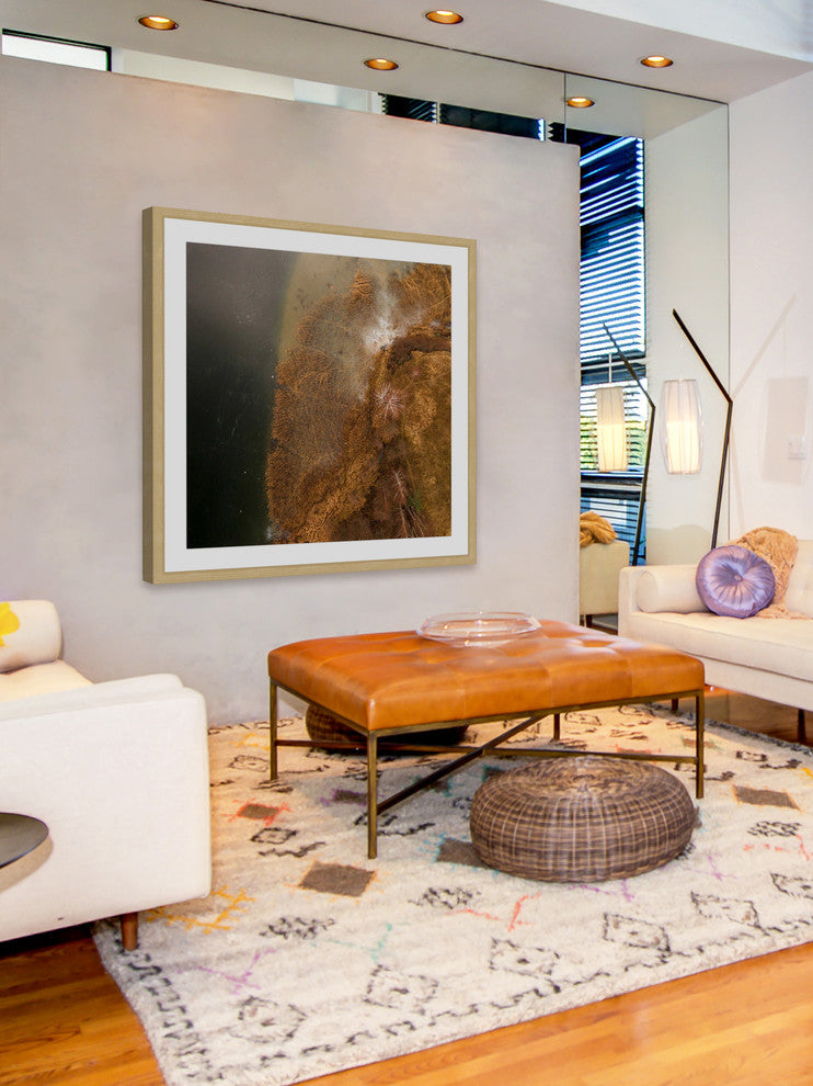 "Undersea Earth" Framed Print by Karolis Janulis features vivid tones and supple artistry. Mounted in a gorgeous frame, this 18 inch wide by 18 inch tall piece will be an exceptional addition to any room. Top quality Giclee print on high resolution Archive Paper Artwork by Karolis Janulis Professionally framed and mounted on acid free archive matte High quality durable non-warping frame Arrives ready to hang Includes a certificate of authenticity Made in the USA