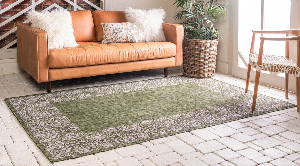 Unique Loom Aqua Blue Floral Border Outdoor Area Rug, Green, Beige, 4' X 6'