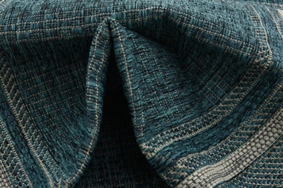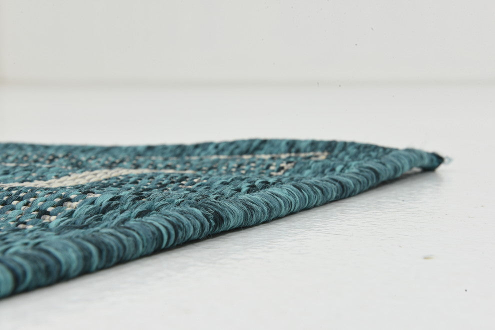 Unique Loom Teal Soft Border Outdoor 2' 0 x 6' 0 Runner Rug
