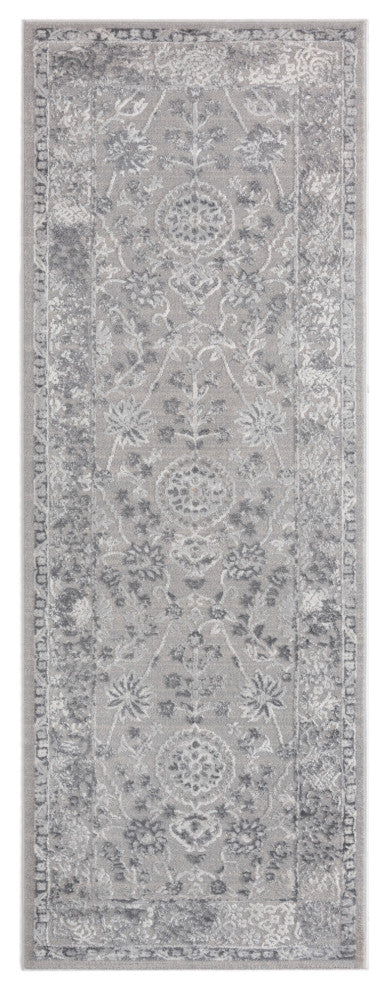 United Weavers Cascades Shasta Grey Runner Rug 2''7" x 7''2"Add a trendy and modish piece to your room with this stunning transitional rug. Ornate distressed design and gorgeous grey tones will enrich your home dcor. Proficiently machine woven in Turkey using the finest olefin and polyester yarn with jute backing for a long-lasting look and appeal.