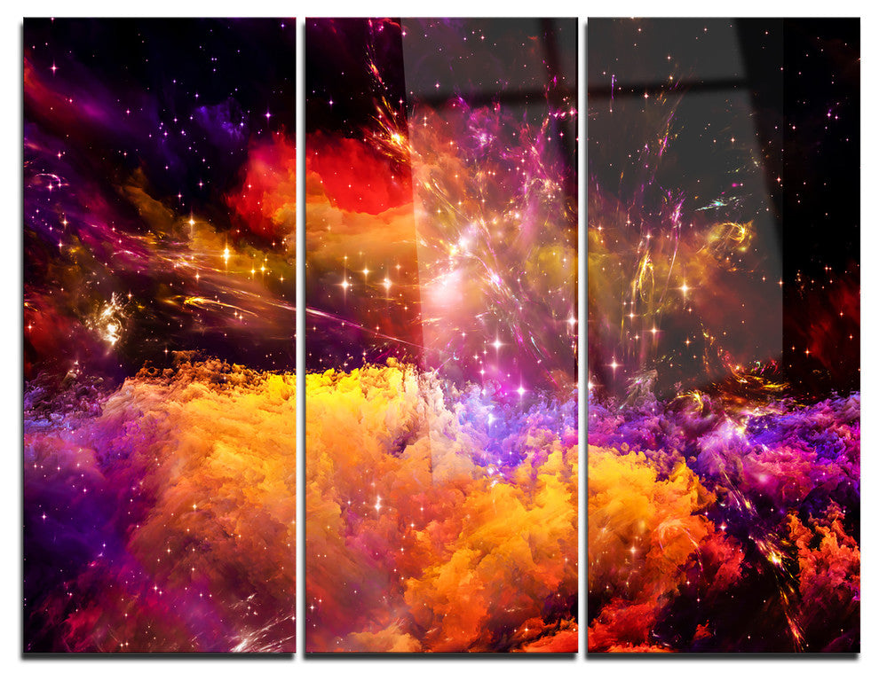 "Universe Fractal Burst" Metal Wall Art, 3 Panels, 36"x28"