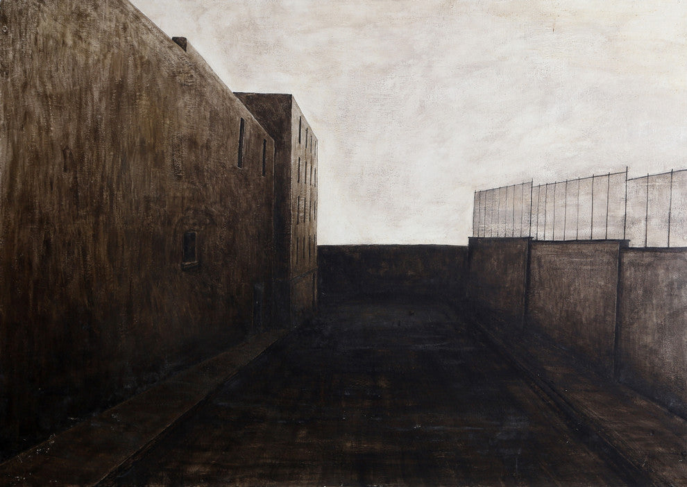 This is an exemplary work by the artist, it will be a stunning addition to any space. More Artwork Details: Artist: Joan Nelson, American (1958 - ) | Title: Untitled - Roof Top View | Year: 1984 | Medium: Egg Tempera on Masonite | Size: 34 x 48 in. (86.36 x 121.92 cm)