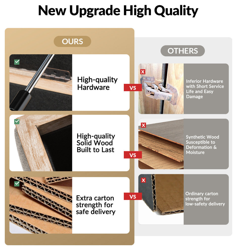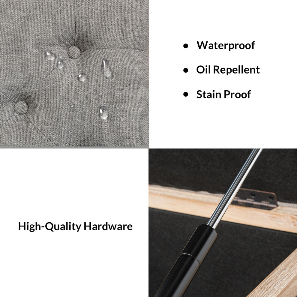 Introducing our versatile storage ottoman, the epitome of casual comfort, sleek modern style, and antique design. Meticulously crafted with solid wood legs with a light-colored finish that highlights the natural variation in texture, this button-tufted rectangular ottoman boasts a plush cushion top adorned with exquisite nailhead trim. It effortlessly serves multiple purposes, offering a cozy footstool for relaxation or a stylish bench at the foot of your bed. With its practical subdivision of storage management, it becomes an ideal solution for organizing your belongings, while its farmhouse charm imparts a delightful touch of rustic elegance. The ottoman''s adaptability to various scenes and functions makes it the perfect addition to any space, serving as a coffee table or facilitating storage management with ease.Product Including: One ottoman, assembly is required.Farmhouse Decor: Showcases an enchanting farmhouse-inspired design, it infuses your home office with a captivating rustic allure.Solid Wood: Made of high-quality solid wood, the storage ottoman guarantees exceptional durability and a natural aesthetic.Button-Tufted & Nailhead Trim Design: The cushioned rectangular top and edge of this classic ottoman boasts a chic button-tufted pattern and nailhead trim, enhancing its visual appeal with a sophisticated and opulent flair.Subdivided Storage Space: Effortlessly merges an antique aesthetic with practicality, it boasts a subdivided built-in storage unit, offering a convenient space to stow away essentials such as blankets, pillows, or magazines.Versatility for Various Settings: Meticulously designed to excel in a multitude of environments, this furniture piece effortlessly adapts to different rooms and serves a wide range of purposes."Product DetailsWeight Capacity: 250 lbsLevel of Assembly: Partial AssemblyWeights & DimensionsItem Size: 36"Wx36"Dx20"HSeat size: 36"Wx36"Dx20"HLeg Height: 7.5''''Seat Fill Material: FoamLeg Material: Rubber Wood Item Weight: 60.28 lbsInstructions:Because the size of the product is measured manually, there may be errors.Country of Origin: China"